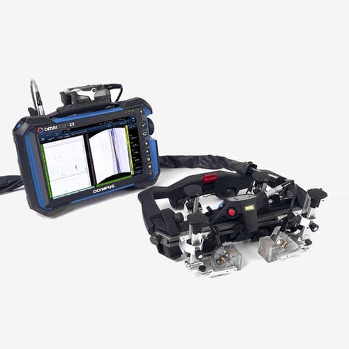 When used with the OmniScan™ X3 flaw detector, the AxSEAM scanner enables fast PA/TOFD screening of long seam welds followed by more targeted inspection of regions of interest using the total focusing method (TFM)—without needing to switch the probes.