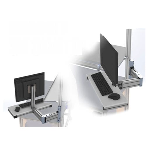 The video shows the many and real movements of the arm, on which we have mounted a screen support plate and a shelf as a keyboard and mouse support.