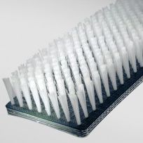 This type of brush is perfectly usable for cleaning tasks of various surfaces, or for the transporting and supporting of fragile products. Dependent on the width, the belt is made with one or more rows. The length determines if extra support is needed in order to position the brush belt correctly. An advantage of this belt is that standard V-strings can be used.