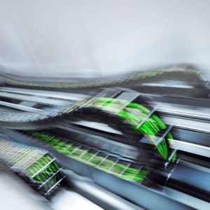 The main feature of this closed cable carrier is that movement can be limited to one axis due to a steel band fixed to one of the four sides inside the carrier. Movement of the conduit remains stable in all other directions.