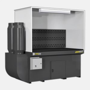 The DD 3×8 is a self-contained downdraft table from Diversitech. It is installed with an automatic reverse pulse self-cleaning system that allows an easy collection of dust, smoke and fumes from various applications above the perforated table top. It can be availed with a broad selection of application kits and customized fittings in order to adhere to OSHA standards of clean air. This table has large capacity paper-pleated filters that acquires an arrestance rating of 99.8% at 0.5 micron. A 2″ deep metal mesh pre-filters is also available as an option. It also has a metal mesh pre-filters that are washable, and main filters that must be periodically replaced.