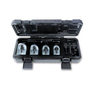 Universal pulling set for Mc Pherarson Strut. Thanks to the discs of different diameter, this tool precisely restores the suspension housing to its round shape.