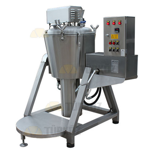 50 kg / batch capacity dry cooker is generally preferred by small capacity facilities. Heating is made through jacket. At the bottom of the machine an agitator mixer and at top of the machine a scrapper mixer is mounted. During evacuation of product machine can lay with 90° grade. Machine has a good insulation to prevent product from heat loss and operator from heat All moving parts have secure switches. Temperature can be adjusted digitally.