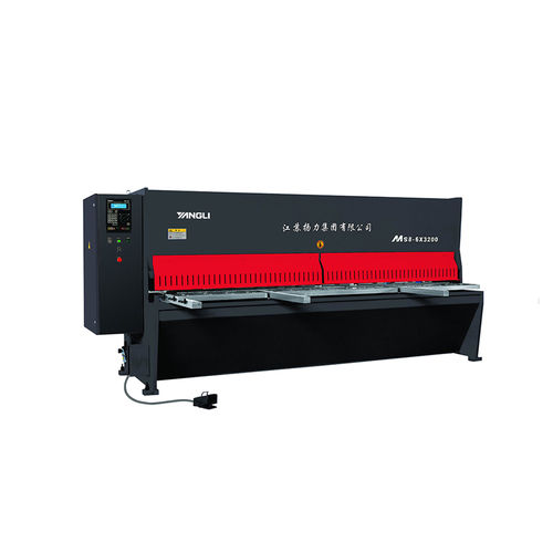 CNC automatic adjusting of MS8 series CNC shearing machine:angle shearing,stroke shearing,blade clearance and rear back gauge;Upper/lower blade:4 blades each;Whole machine with tempering treatment;Pneumatic rear retainer;Special DELEM(Holland)DAC360 CNC system for shearing machine.