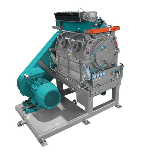 CONDUX CS-Z Fine Cutting Mill is the ultimate device used in the size reduction of non-friable and soft products. The device is capable of providing fine cuts, thanks to their maximum level of cutting stroke combined with the use of special inserts. The cutting stroke is achieved through the combination of rotational speed of the rotor, number of rotor knives and number of stator knives. Thanks to the open rotor design of the cutting mill, there is an increased air flow, high throughput capacity, bulk density and excellent powder quality. The threat of overloading is non-existent, because the feeder unit is positioned in the middle. To ensure there is a continuous feeding of rolled product, these specially designed feeding systems can be mounted above the machine inlet.