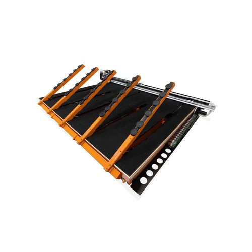 Autonomous cutting table for 6-metre glass equiped with automatic loading system – VA. Its innovative design meets the loading, cutting and automatic unloading needs of the most demanding customers, ensuring maximum productivity and automation in the smallest possible space.