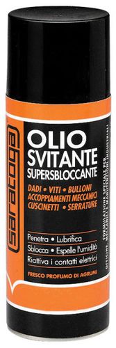 • Instantly releases nuts, screws, bolts, mechanical couplings, bearings and locks jammed by rust, oxidation, encrustations and paint. • Strong lubrication and protection against corrosive and oxidizing agents. • Eliminates all traces of moisture from circuits and electrical installations; can also be used as cutting oil for threading. • Neutral on metals, paints, rubber. • With a fresh, citrus scent.