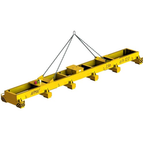 ARMAG LT magnetic spreader beam is equipped with electropermanent lifting magnets, controlled by pulse magnetization and demagnetization of magnetic systems (pulse magnets).