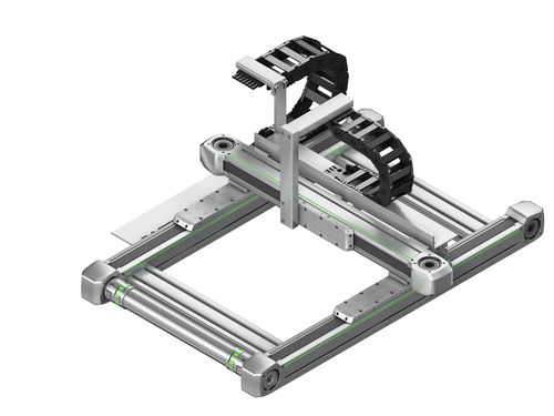 HIWIN HS2 two-axis systems are flexible units for positioning along the X and Y axes. The X axis is based on a HIWIN HD double axis. On the Y axis, you can choose between a HIWIN HM-B belt drive axis (module) or HT-B (table) for dynamic positioning. HIWIN two-axis systems are suitable for two-dimensional handling tasks and can be easily extended to a three-axis system by adding a Z axis.
