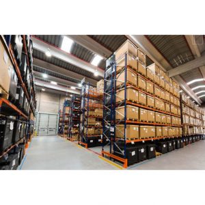 More pallet positions are created within an area, by reducing the width of the aisles between the racks. Specialist mechanical handling equipment, such as fork lifts is required to retrieve and put away pallets in the narrow storage.