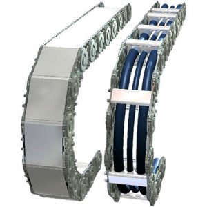 Our vast line up of standards will allow you to select the optimum Catrac cable carrier or Catrac hose carrier to suit your specific needs. Link heights from 2” for lighter duty applications through 14” for larger industrial type applications are available, as well as a huge array of bending radii and widths. Custom designs are a specialty. Catrac cable and hose carriers are manufactured from 80,000 psi hi-tensile strength steel links with #12 gauge and #10 gauge link plates being the standard.