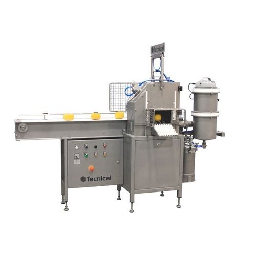 Automatic painting equipment with a static aerographic gun and a system for rotating the cheese. There is a conveyor belt and a device that feeds the cheeses into the painting section. Equipment particularly suitable for cylindrical cheeses. Cheese colouring systema adapted to the production and the formats of each customer.