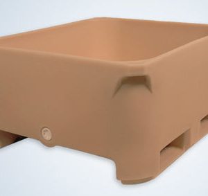 This type 350 plastic mass container is employed in the meat industry for preserving meat and frozen products. It is customized for cramped spaces. The extremely shielded bulk container is in accordance with the ISO 6780 international transportation standard regulations in all aspects and is accessed by the use of a hand pallet jack and a forklift truck. It can be operated on from all four sides and rotated 180° by the forklift truck or lifting tipper and carried with strops. Water filled and in good maintenance the containers can be placed on top of each other to reach up to four containers height. It is available with one or two 50 mm outlets or without outlets.
