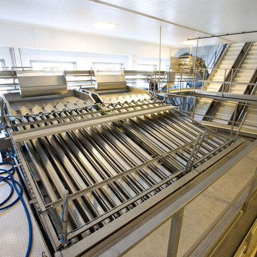 The Cabinplant axial roller grader is designed for gentle and efficient size grading of various products according to thickness. The inclination angle of the rollers, the capacity and the grading accuracy are product specific. Equipped with infeed vibrator ensuring maximum utilization of roller length. The axial roller grader handles up to 5 gradings.