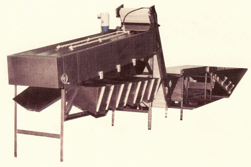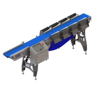 The PG uses four roller with flats on the top set to separate the shrimp. The top set vibrates the shrimp to stop them from stacking up on top of one another. This stops small shrimp from riding a larger shrimp down to the wrong grade. Both the rollers and the grade chutes are adjustable in order to allow for each customer to customize the grades for their needs. The standard size of the graders is from 1 to 6 channels.