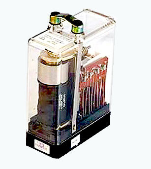These are DC tractive armature magnetically latched line relays, designed for use where a self-latching relay with a separate release winding is required. The relay is held in full operating condition by a permanent magnet, releasing only when the release coil is energized. A high back stop pressure ensures that the armature will not move and latch up accidentally due to vibration. The contacts are Silver Impregnated Graphite to Silver and the relay complies with BRB Specs. 935 A.