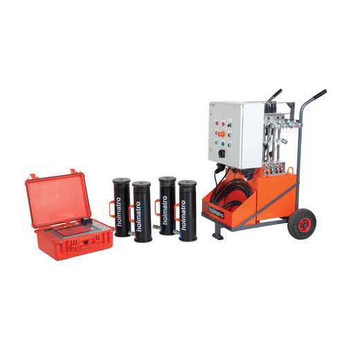 Computer-controlled synchronized positioning of heavy loads with high damage risk has never been so easy with the Holmatro Synchronized Positioning System. Because of the use of multiple-split-flow pumps, each lifting point has its own single oil flow whereby the load can be positioned smoothly and with extreme precision. The use of multiple pumps results in a close position next to the lifting points. This minimizes the dynamic effect of the hydraulic system and reduces hose damage. The pumps can be moved around the job easily on wheels. Also, the complex web of hoses and cables towards the load will be reduced. The flexible configuration of the system makes it suitable for each specific positioning job. No matter what the size, weight or number of lifting points.