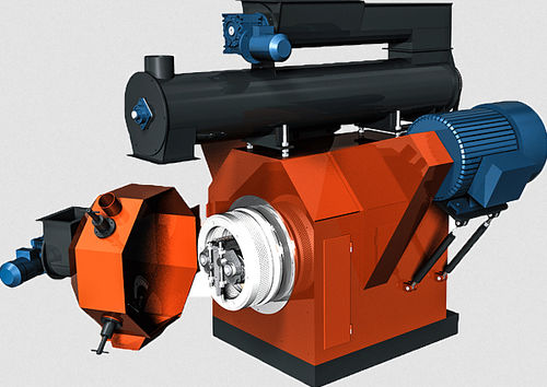 Our PR granulators are equipped with two electric motors, which drives a large cast-iron wheel using a V-belts. A ring-shaped matrix with conical/cylindrical holes is bolted to the wheel. Two rollers squeeze the material through the holes. Screw feeders allow for accurate and optimal dosing of the raw material. The device is equipped with a steam conditioner which allows users to process almost every raw material. Basic requirements for the raw material: moisture 16-18%, fraction size 2-3 mm.