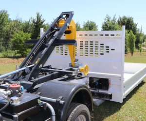 With pillar-mounted slewing crane for lifting and lowering materials with convenience.