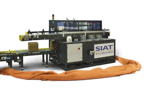 The B&B – MAF wallpaper packaging machine is a stretch packer system which is designed to meet the demands of the wallpaper industry. The wallpaper rolls are exactly positioned provided with printed labels and packaged in film. Particular attention in the continuous development of these machines is received by the shrinking face, the label marking, the label positioning and the high flexibility of formats.