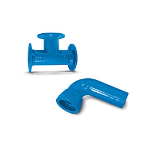 The fittings are protected by a fusion bonded epoxy coating that is certified and quality controlled by the renowned German GSK association, which ensures a highly durable range of products. Included in the range are Duckfoot Bends, Flanged Spigots, Reducers, Bends, Tees, Double Tees, Blind Flanges and Threaded Flanges.