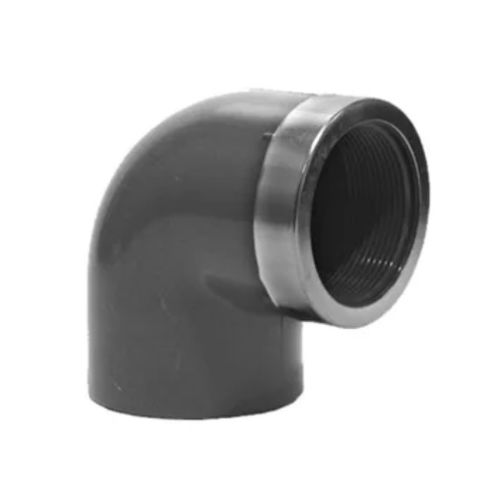 90° elbow with reinforced solvent weld socket d and BSP threaded female end R with STAINLESS steel reinforcing ring.