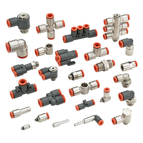Push-in fittings by Metal Work are the best elements for connecting pipes and actuators. Quick and easy to use, the Metal Work push-in fitting can be re-used thousands of times without affecting the pneumatic and mechanical seal in any way. It comes in various configurations and guarantees a virtually unlimited, highly flexible use. The clamping spring with its special shape grips the pipe without scratching or deforming it, which facilitates release.In the fittings, the release bushing has patented screwdriver slots to facilitate release in applications not accessible to the fingers. Configurations RL19, RL21, RL22, RL23, RL23M, RL24, RL44, and RL49 (except for Ø5), have a ring for fixing to the wall asymmetrically in order to contain the head of a screw within the overall dimensions of the fitting.There are push-in fittings for metric pipes in the diameter range of 3 to 14, and push-in fittings for inch pipes in the diameter range of 1/8 to 1/2. Threaded connections have ISO 228-1G cylindrical thread in the 1/8-1/2 range, ISO 7-1 conical thread in the1/8-1/2 range, metric thread in the M3 to M12x1.5 range, and conical thread compatible with NPT female threading.