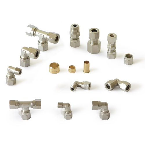 Fittings with a cutting ring are designed to connect copper pipes and hoses made of plastic. It is recommended to use an internal bush (B 12) if the fitting connects with the hose