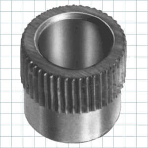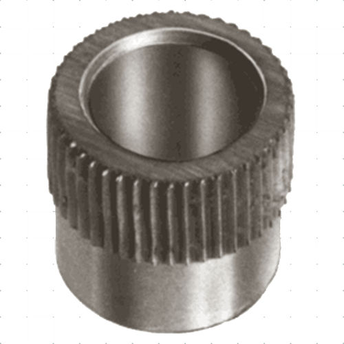 SP bushings are similar to P bushings, but with top serrations to prevent rotation in soft materials. SP bushings are recommended in high-torque situations for materials such as magnesium, aluminum, masonite, or wood. Serrations also resist axial force to prevent pushing the bushing through the jig plate. The finish-ground OD below the serrations ensures accurate ID location.