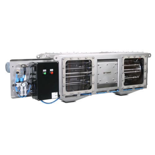 Especially suitable for magnetic filtering of small amounts of ferrous contaminants from poorly flowing – e.g. fatty – powders in free-fall transport pipes. Rotation of the magnetic bars prevents bridging and blockages.