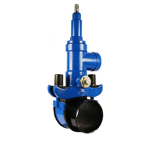 High-lift valve fitting with ball shut-off for tapping without the use of an auxiliary shut-off. For the entire nominal diameter range from DN 80 to DN 500, only one connection piece with patented Vario seal is required. The Vario seal is factory-mounted in the connection piece, which avoids unintentional twisting or falling out on the construction site becomes. The sealing material complies with the KTW recommendations of the UBA and the requirements acc. DVGW worksheet W 270.
