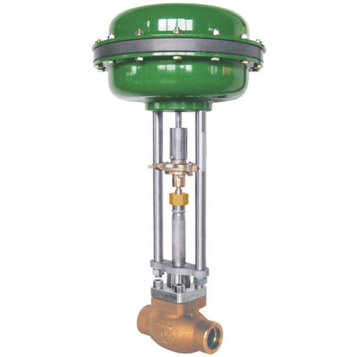 These cryogenic globe valves have a pneumatic actuator at PN 50. They have a bronze body and stainless steel topwork, with internal parts made from bronze. The actuator can be spring closed, air opened or on the contrary. The gland packing is “live loaded”. The actuator is not cleaned or degreased for oxygen service.