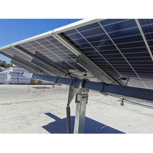 Kseng KST-1P solar bracket is designed with a tracking mechanism that follow the position of the sun as it moves from east to west.  Single axis tracker can increase production between 25% to 35%.