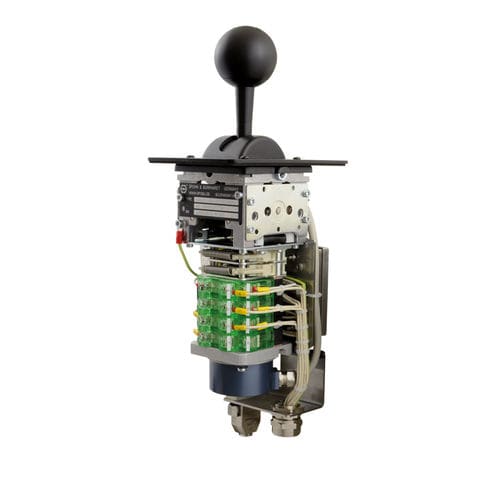 The FBS, a special version of the VNS0, is a switch developed for travel and braking operations used in trams and numerous other railway vehicles. It has been field-tested in practice over many years and has an impressively long service life and high reliability. In addition to its modular ergonomic design, it is resistant to ozone and UV radiation, so it can withstand harsh evironmental conditions. The deadman function provided with various handle shapes can be achieved either by mechanical-electrical means or with capacitive sensors and evaluating electronics. Possible switch versions vary from simple step switches to potentiometer switches to switches with encoders.