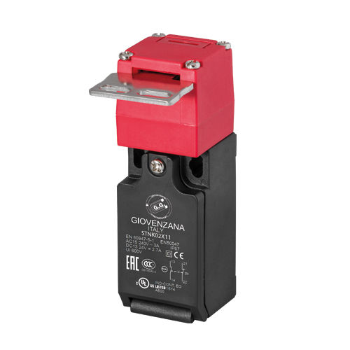 The STNK02 Series of safety interlock switch and safety door switch models with a flat key are safety switches for machine and equipment applications that require a robust safety limit switch. The STNK02 safety interlock switch can be ordered with different contact types including 1NC/1NO slow action or 1NC/1NO snap action and other contact arrangements available upon request.
