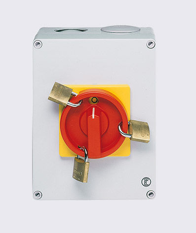 Can be locked in the Off position, e.g. with padlocks