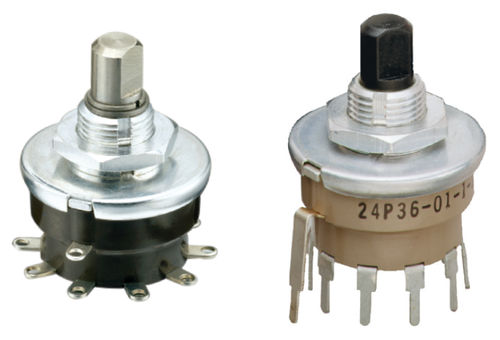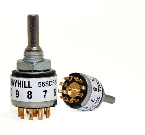 Grayhill is the leading manufacturer of single and multi-deck rotary switches with extremely rugged construction and virtually limitless configurations. Many of our rotary switches are MIL qualified to exacting electrical, mechanical and environmental standards. We offer many options including isolated positions, spring returns, adjustable stops, concentric shaft switches and configurable keylock switches. Standard rotaries can be configured with solder lug termination, PC termination, various angles of throw and multiple poles. Contact a Grayhill representative early in your design process to discuss your application. In many cases, we can meet your requirements with a standard option or a simple modification.