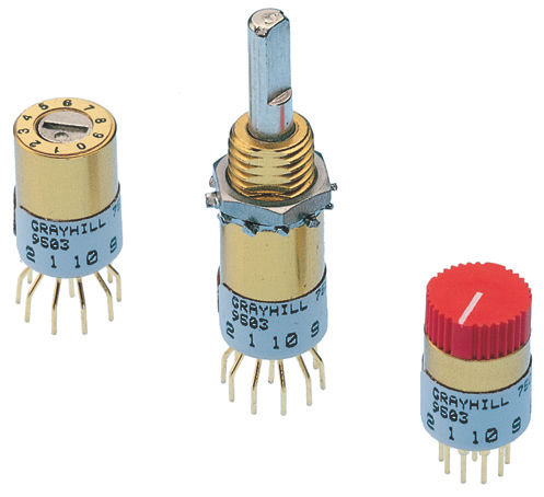 Grayhill is the leading manufacturer of single and multi-deck rotary switches with extremely rugged construction and virtually limitless configurations. Many of our rotary switches are MIL qualified to exacting electrical, mechanical and environmental standards. We offer many options including isolated positions, spring returns, adjustable stops, concentric shaft switches and configurable keylock switches. Standard rotaries can be configured with solder lug termination, PC termination, various angles of throw and multiple poles. Contact a Grayhill representative early in your design process to discuss your application. In many cases, we can meet your requirements with a standard option or a simple modification.