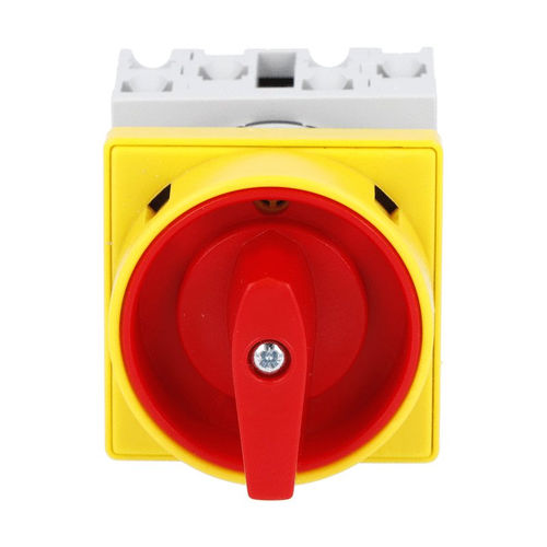 Rotary cam switch GX series, ON-OFF switch 3 poles 16A, for front mounting with red/yellow handle padlockable in 0 and protection covers, front plate 48X48mm