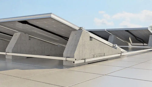 The system with fiber-reinforced concrete support ZC1564, allows installing a single row of photovoltaic modules arranged horizontally or vertically with a 15° inclination.