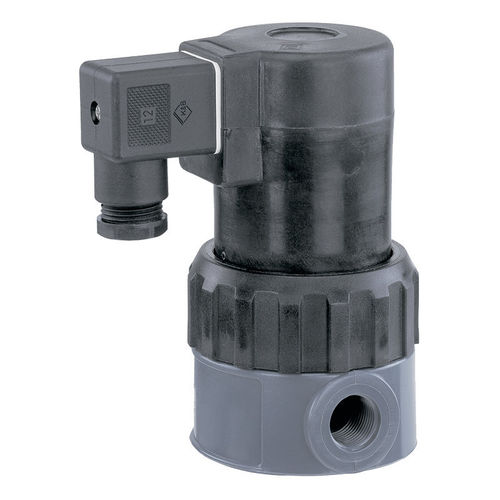 The GEMÜ 202 directly controlled 2/2-way solenoid valve has a completely plastic encapsulated coil. The armature is sealed by a bellows made of PTFE backed by an additional safety diaphragm. The valve body is available in various materials and with a straight through or angle valve body design.