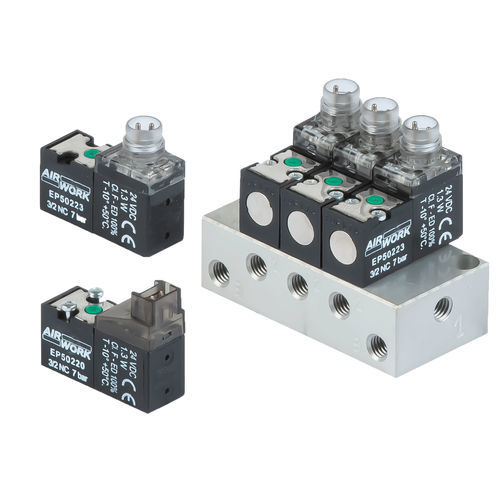 The solenoid valves directly controlled are suitable for assembling on multiple or single bases; they have a low consumption of energy and have a small monostable control for an eventual manual intervention.