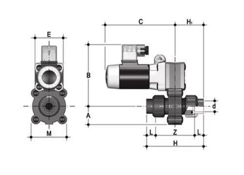 2 way solenoid valve with ASTM female union ends for solvent welding.