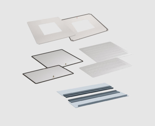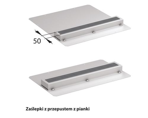 Set of 2 sliding gland plates with foam strip (No. 4 and 5) or brush strip (No. 6 and 7). Used for one opening in SZE3 cabinet bottom plate (note: 1000 and 1200 mm wide cabinets have two openings in the bottom plate).