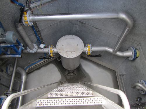 The gravel filter enables the coarse filtration of the biogas by passing through a gravel layer. Foreign particles, foam and condensate are removed and channelled to a drainage point.