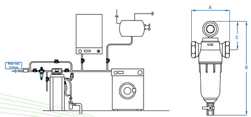 – Inlet / outlet: ¾” F and 1″ F, using adapter pieces (supplied).