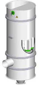 The product filter apparatus [series 50] is especially suitable to suction clean working places and machines where the separated product is returned into the process or collected.