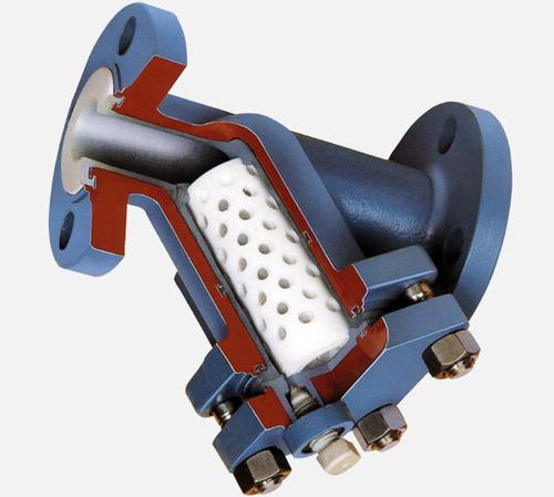 The Insert consists of two perforated PTFE cylinders with an ETFE filter screen in between. This design offers the same outstanding corrosion résistant properties as the FEP or PFA lining material. Standard mesh Is 60 (300 micron). Optional mesh: 169 (100 micron): 35 (500 micron): 19 (1,000 micron). Other mesh openings on request.