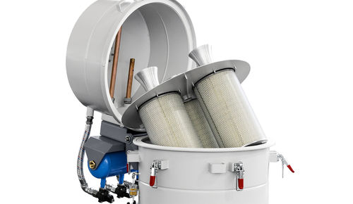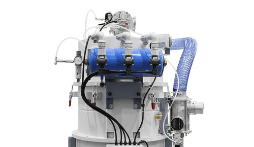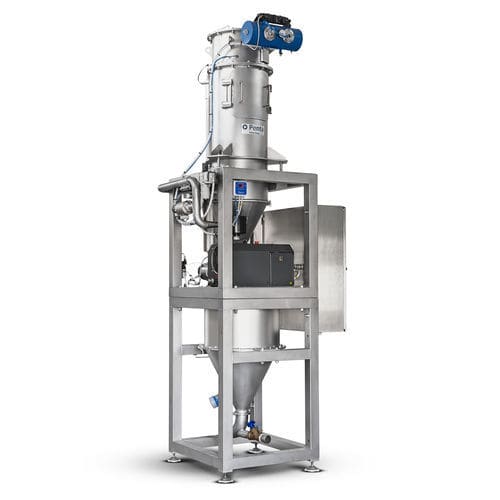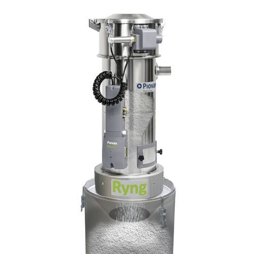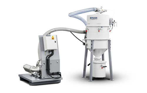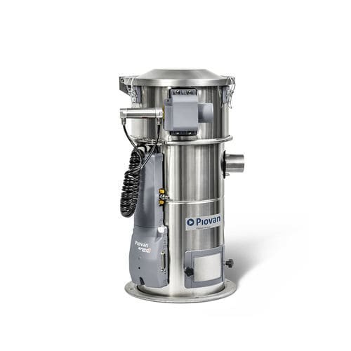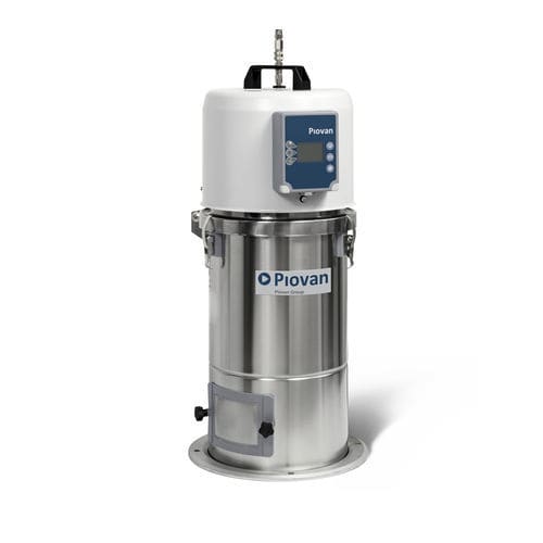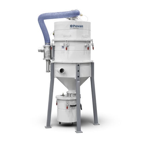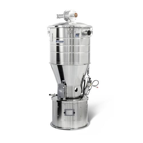 Piovan’s automatic cleaning system cleans paper or Polyester cartridges by automatic compressed air jets and the dust is collected in containers which are easy to empty.