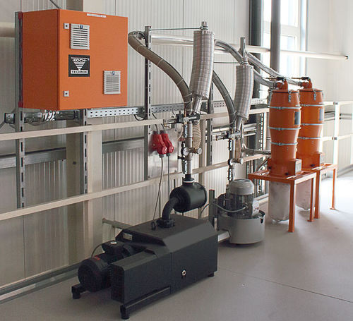 The KOCH safety filter automatically cleans the dust-laden conveying air and thus protects the vacuum generators installed behind it.